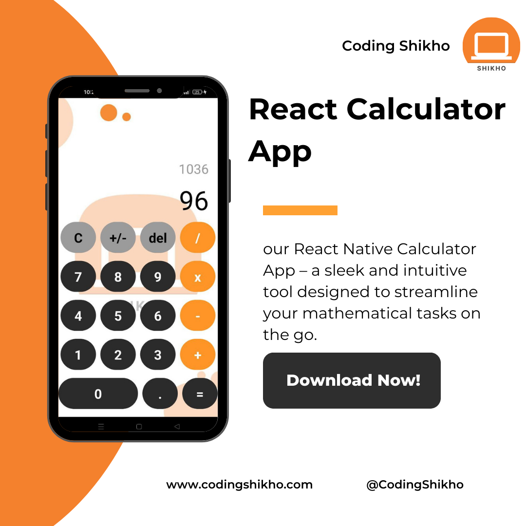 Introducing our React Native Calculator App – a sleek and intuitive tool designed to streamline your mathematical tasks on the go. This user-friendly application offers a seamless experience, allowing you to perform basic arithmetic operations with ease. Featuring a minimalist interface and responsive design, our calculator app provides the perfect balance of functionality and aesthetics. Whether you’re crunching numbers for work, school, or everyday calculations, our app has you covered. Say goodbye to complex equations and hello to simplicity – download our React Native Calculator App today and simplify your math